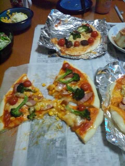 昨夜は珍しく生地から作りました、我が家のピザ